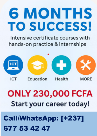 #BEFAcademy #CertificateCourses #SkillsForSuccess #EducationForChange #6MonthsToSuccess #CareerReady #HandsOnTraining #InternshipsIncluded #StudyInCameroon #BEFLeads #EnrollNow #FutureStartsHere
